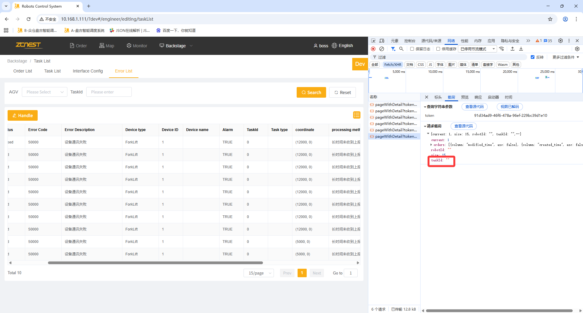任务管理-异常列表,重置功能,搜索数据不准确,详见图