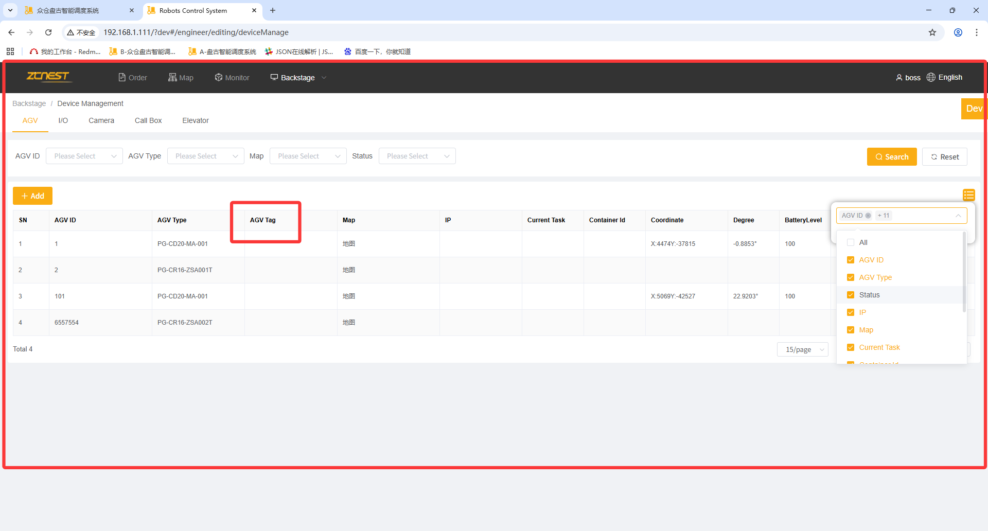 - 主题 从 设备管理-agv。字段显隐字段与列表字段不一致 变更为 设备管理-agv。字段显隐字段与列表字段不一致(缺少agvtag)